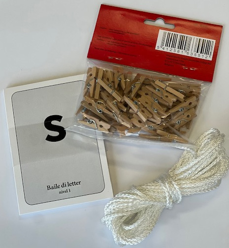 Letterkaartjes (set = 36 kaartjes incl.knijpertjes en touw)